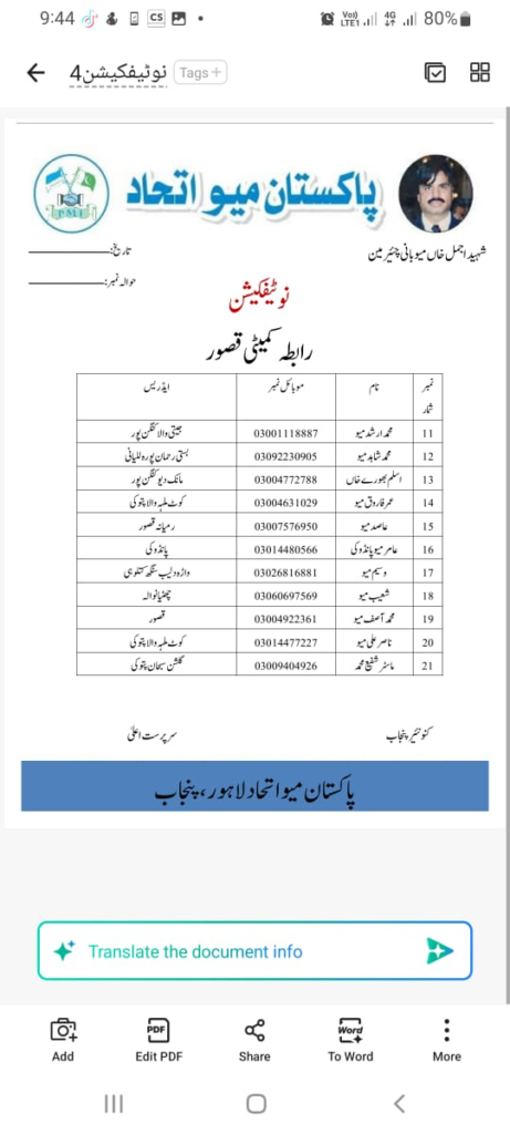 حاجی نور محمد میو نائب صدر سندھ اور لائبہ عرفان قصوری کا لاھور آمد پر حاجی نور محمد میو اور امجد شیر میو نے رائیونڈ میں استقبال کیا